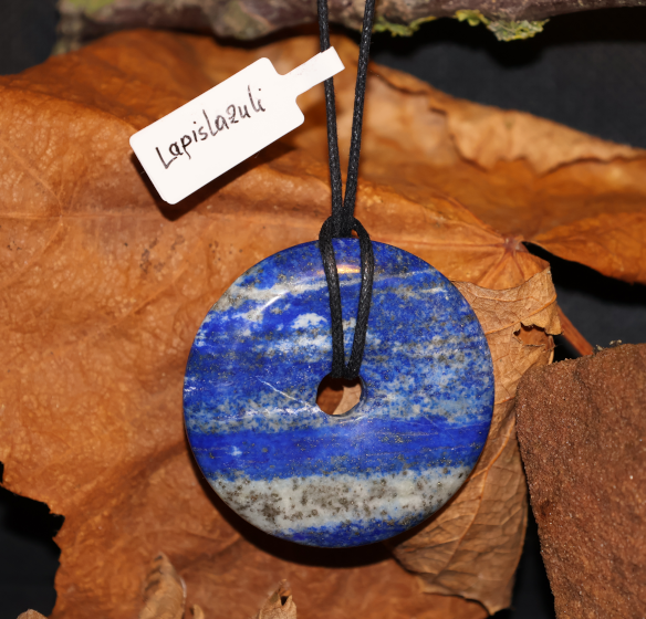 Tiefblauer Lapislazuli Donut mit Schnur.